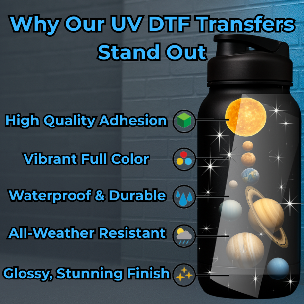 ✨ Glossy, Ultra-Clear Finish – Printed on premium UV DTF adhesive film with real shine.